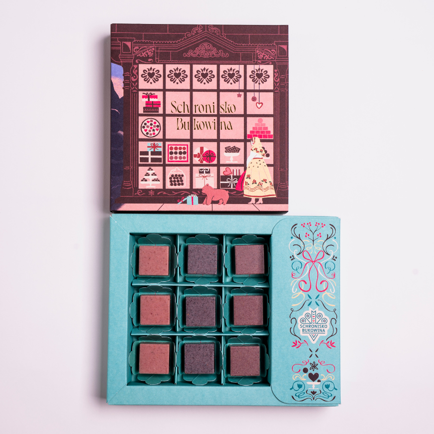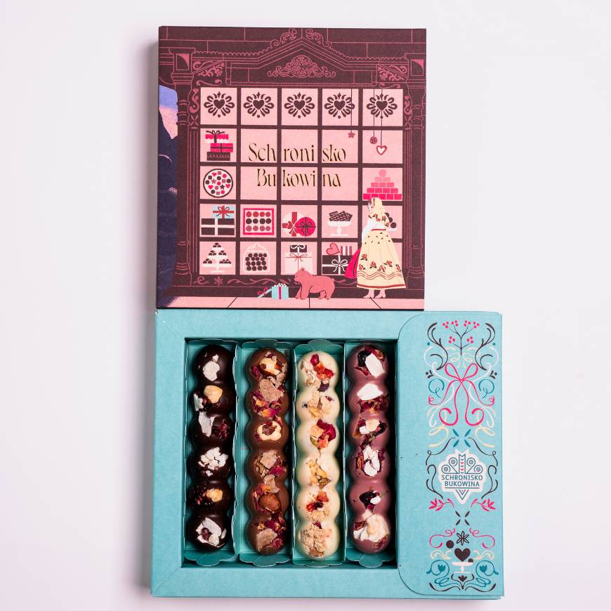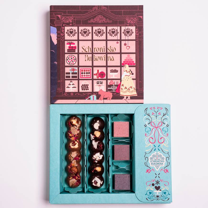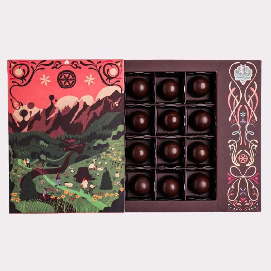 Duży zestaw dwunastu pralin piernikowych - idealny, by podzielić się ciepłem świątecznych smaków z bliskimi.