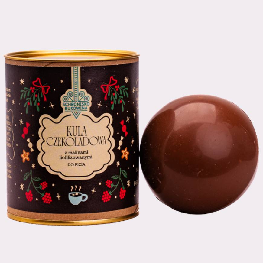 Kula czekoladowa z liofilizowanymi malinami - zanurz ją w gorącym mleku, a w kilka chwil zamieni się w aksamitną, malinową gorącą czekoladę.