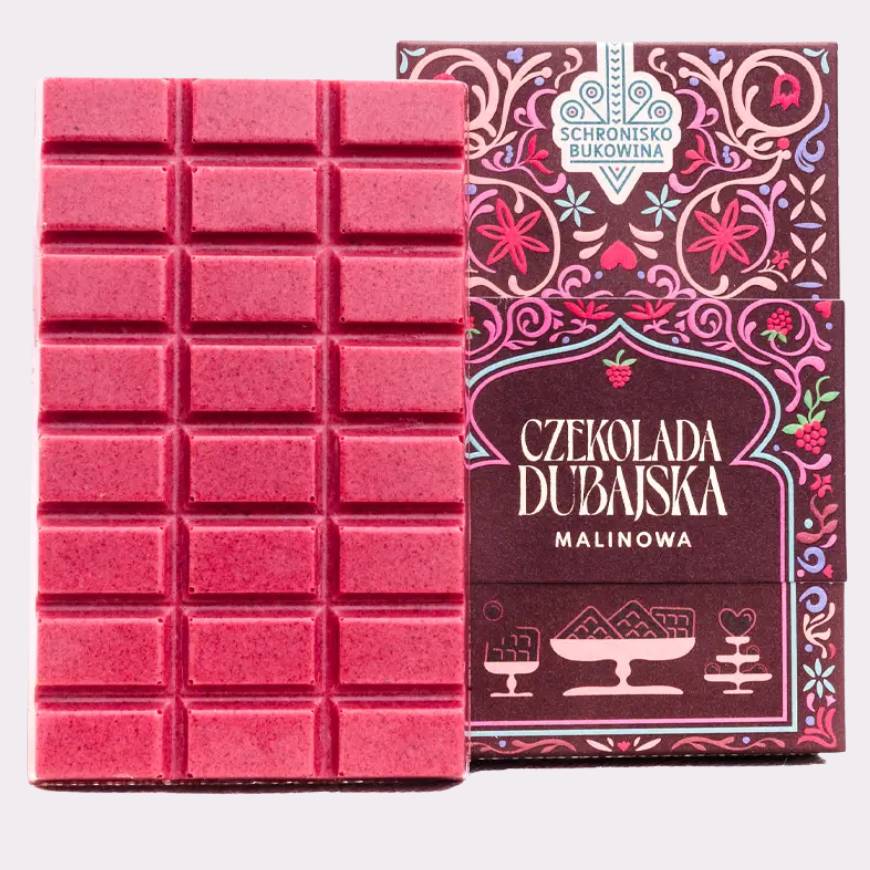 Dubajska czekolada w malinowej odsłonie - biała czekolada z liofilizowaną maliną, o intensywnie owocowym, a jednocześnie wyrafinowanym charakterze.