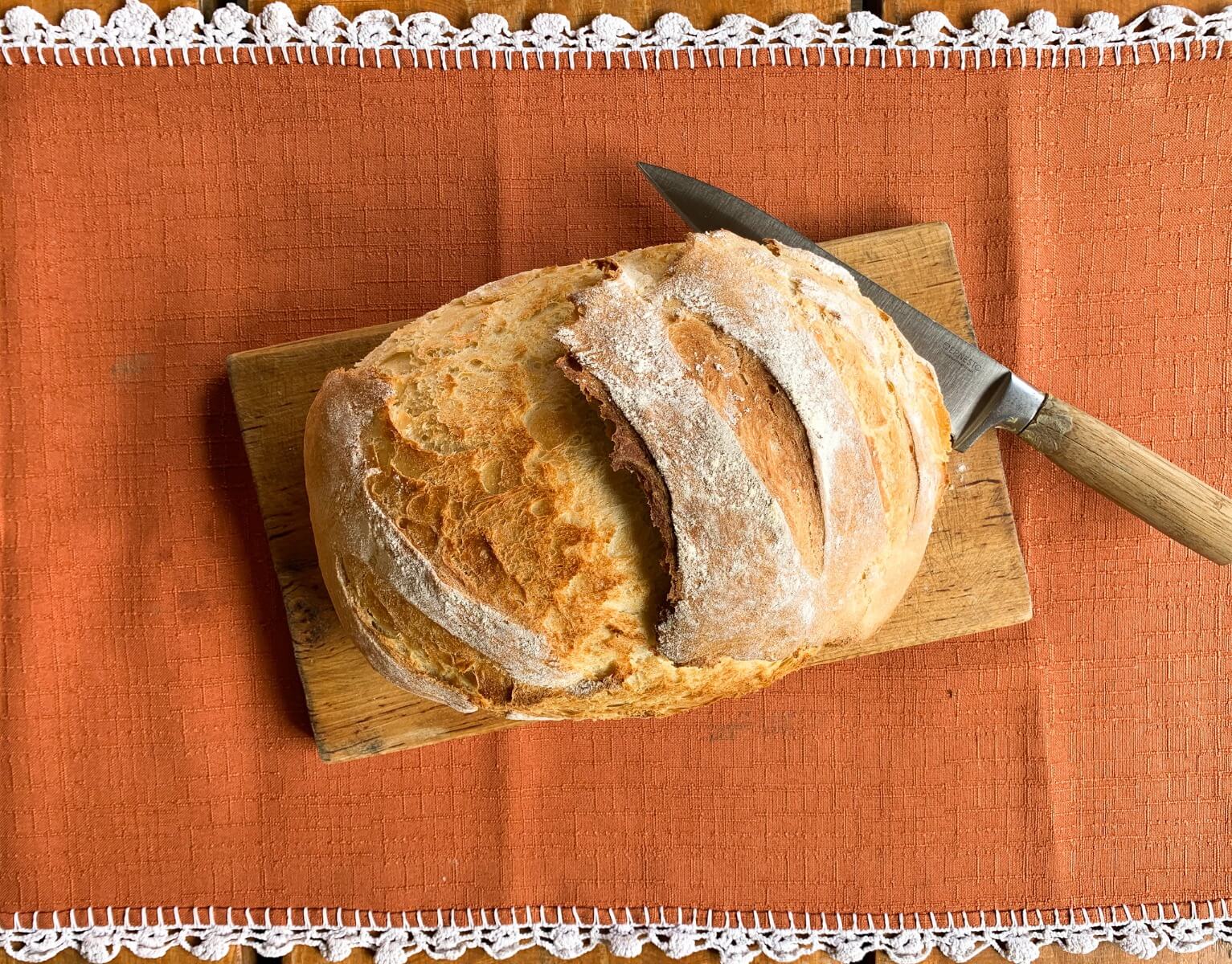 Teraz możesz zrobić rozcięcia na chlebie za pomocą ostrego nożyka lub żyletki – dzięki temu ciasto lepiej urośnie, a Ty będziesz mógł poczuć się jak prawdziwy artysta – piekarz.