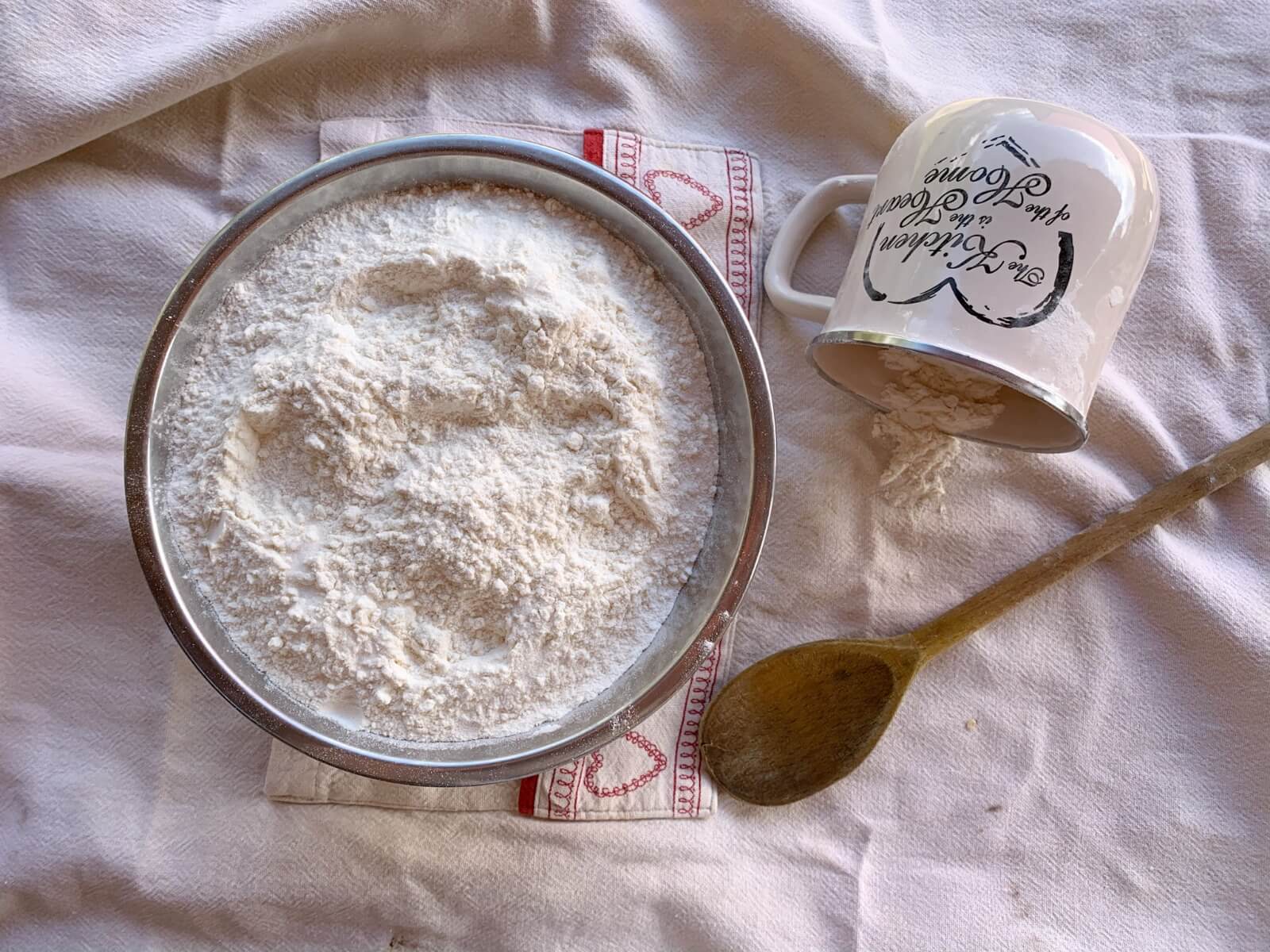 2. W między czasie wymieszaj (w dużo większej misce) pozostałą mąkę z solą.