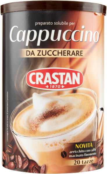 Cappuccino Da Zuccherare 250g - Crastan to doskonała propozycja dla miłośników pysznego i aromatycznego napoju. Doskonale skomponowane proporcje ziaren kawy i mleka w proszku zapewniają niezwykłe doznania smakowe.