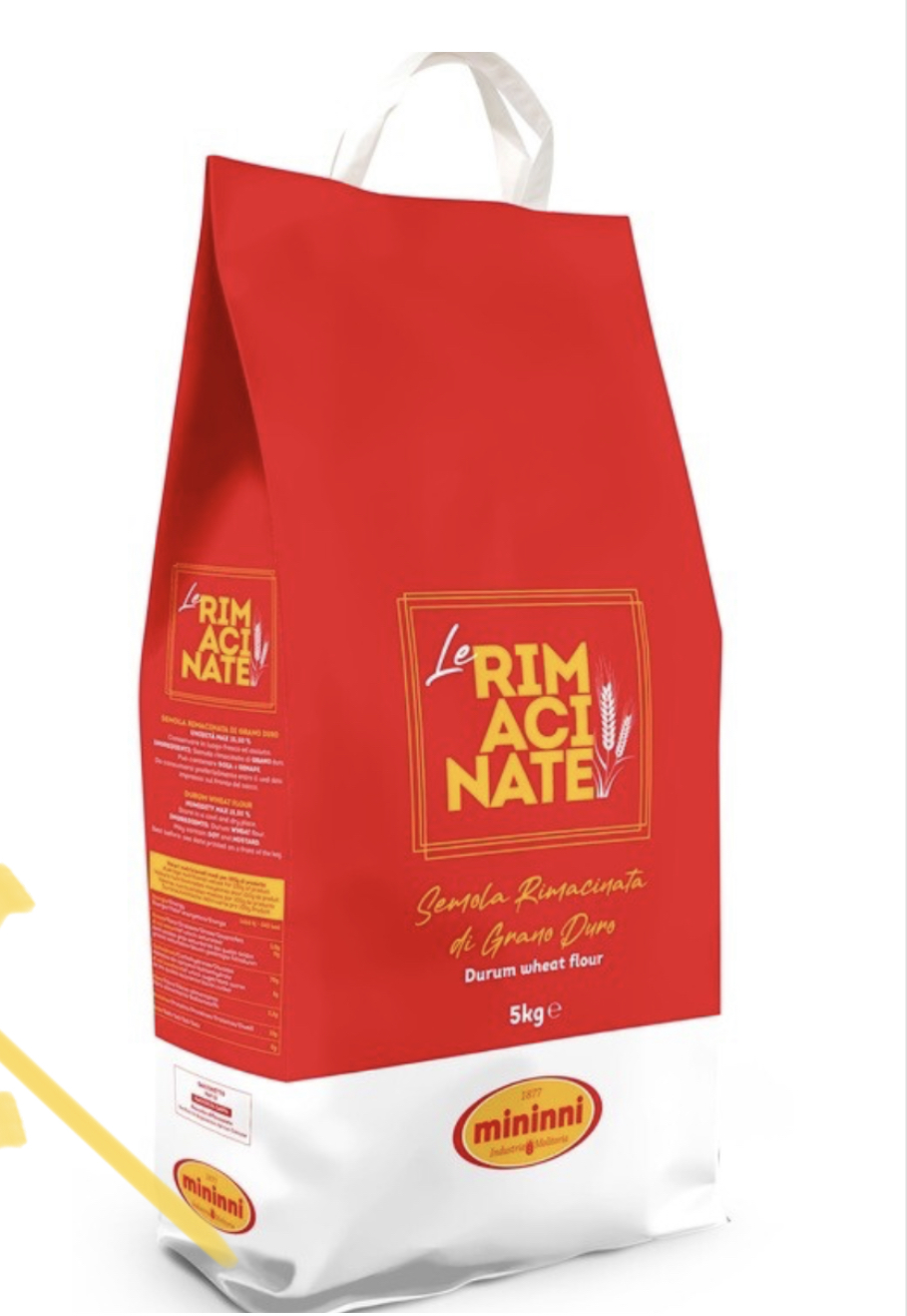 MININNI SEMOLA RIMACINATA GRANO DURO 5 KG to pyszna włoska mąka z twardego pszenicznego ziarna, doskonała do przygotowywania tradycyjnych makaronów i ciasta na przykład na pizzę czy chleb. Semolina klasy Rimacinata - czyli drobno zmielona. Jeżeli szukacie Grano Duro - również mamy w ofercie. Grano Duro to grube ziarna używane jako podsypka do pizzy.